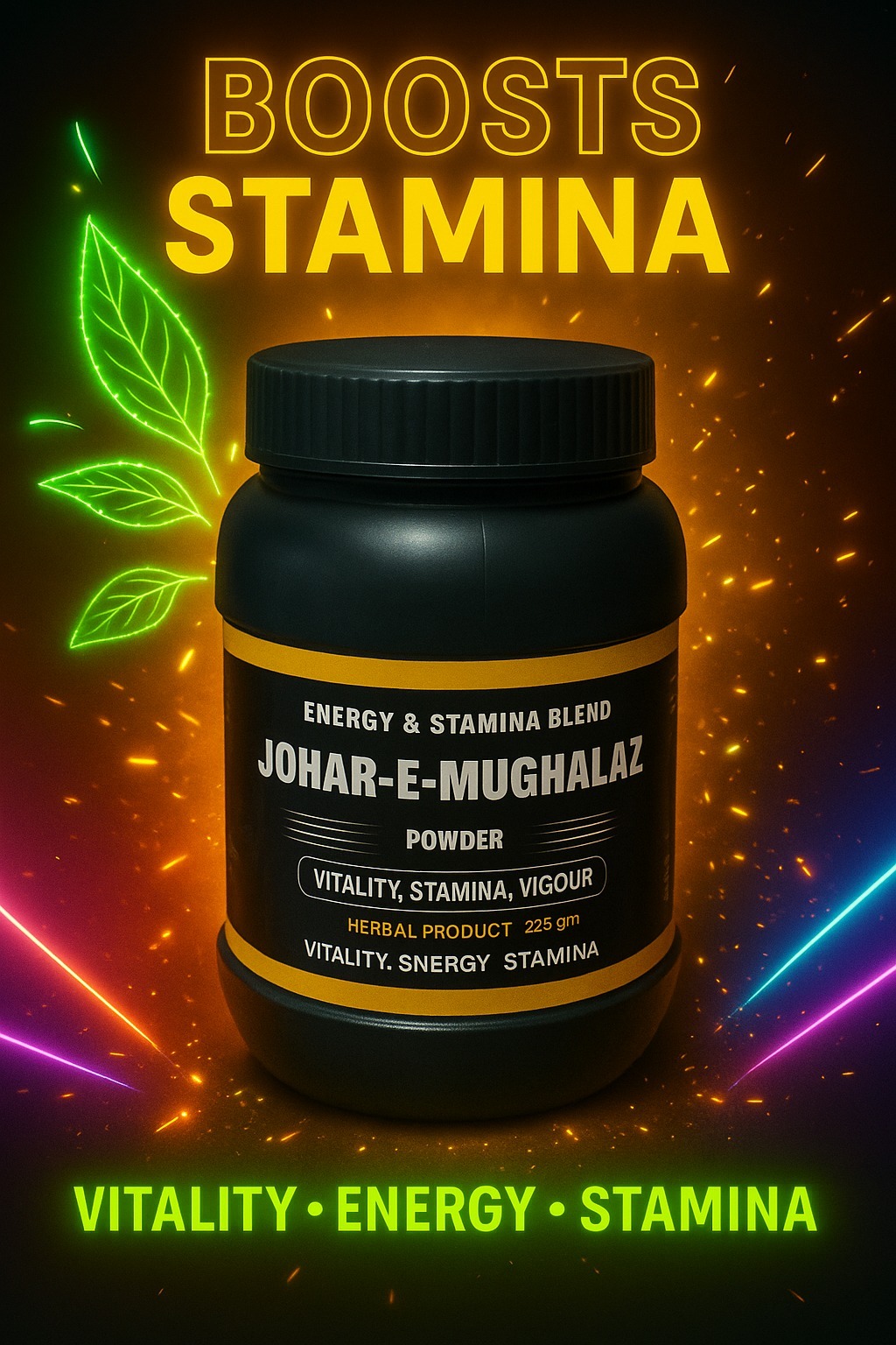 “Johar-e-Mughalaz is a premium herbal supplement crafted from a blend of nature’s finest weeds our aimed at restoring balance, vitality, and wellness to your life. Inspired by ancient herbal wisdom and formulated with potent, all-natural ingredients, Johar-e-Mughalaz supports immunity, boosts energy, and promotes a healthy, active lifestyle. Discover the power of nature in every Jar, and embrace the path to lasting health.” Must use